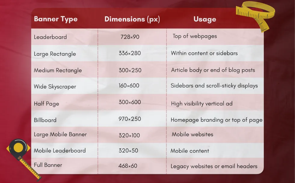 Banner Dimensions for Ads