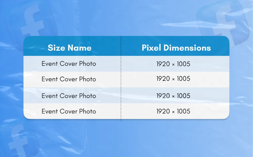 The Facebook event banner dimensions are also set to 1920 × 1005 px. This ensures consistency across devices and aligns with the platform’s requirements for event covers.